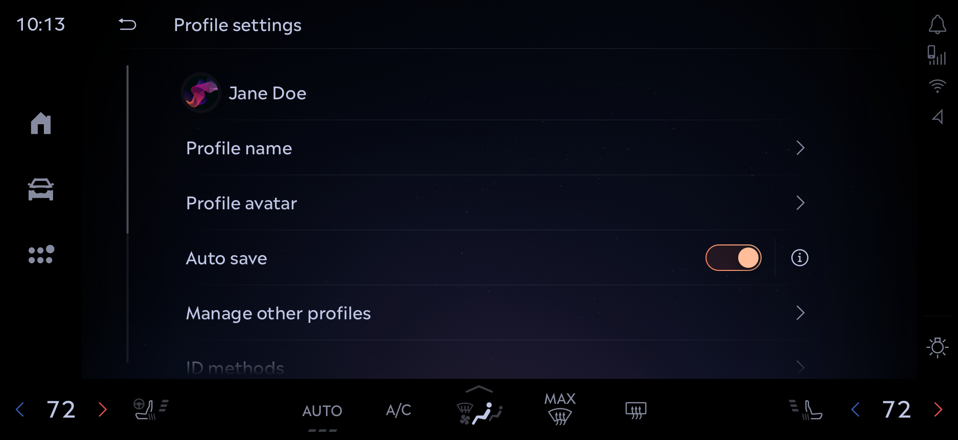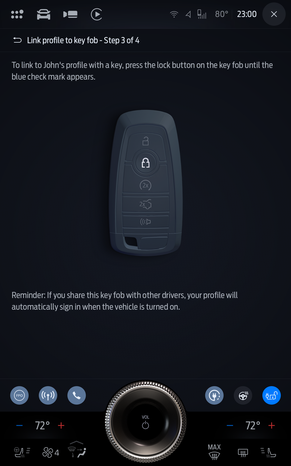 The existing experience on Sync 3 and 4 gave the users the minimal amount of information that they were able to associate to a profile, which was just a seat position, a profile name, and an identification method. The improvement requested by the feature team was to have an onboarding experience where users were able to personalize more items in the vehicle and associate it to a profile that would maintain that information across multiple vehicle ignition cycles.